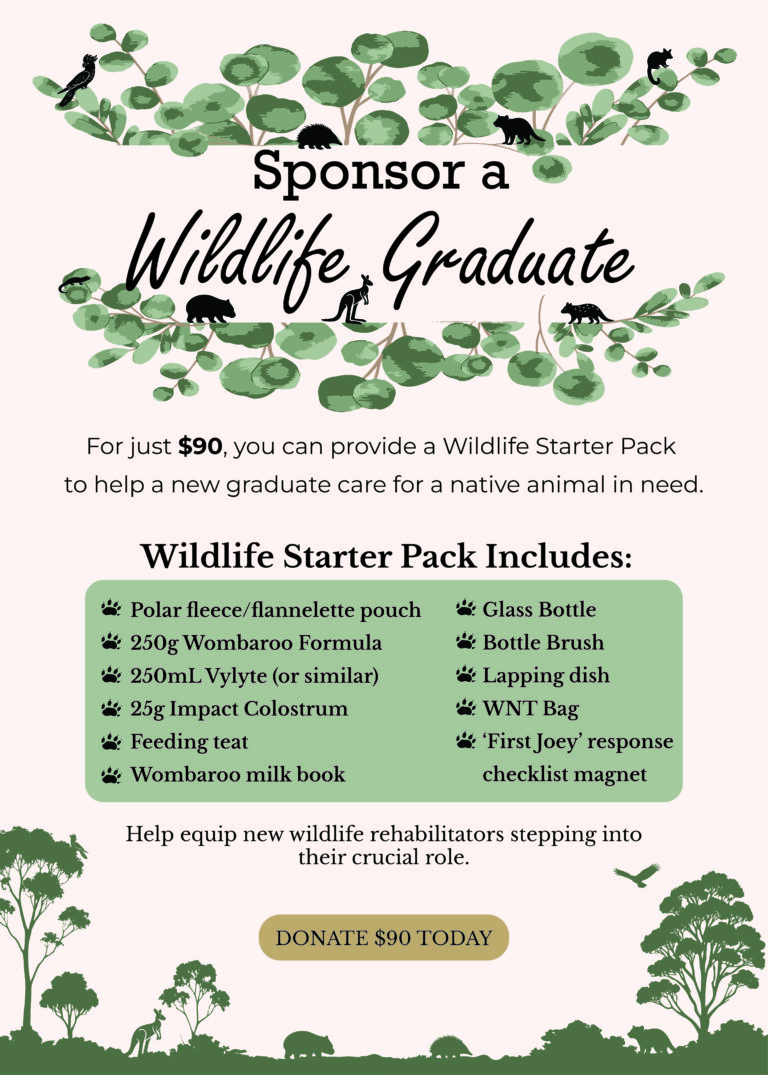Our Wildlife Starter Packs are designed to support new wildlife rehabilitators as they step into this crucial role. Each pack contains essential items needed to care for an injured or orphaned native animal during those critical early days in care.